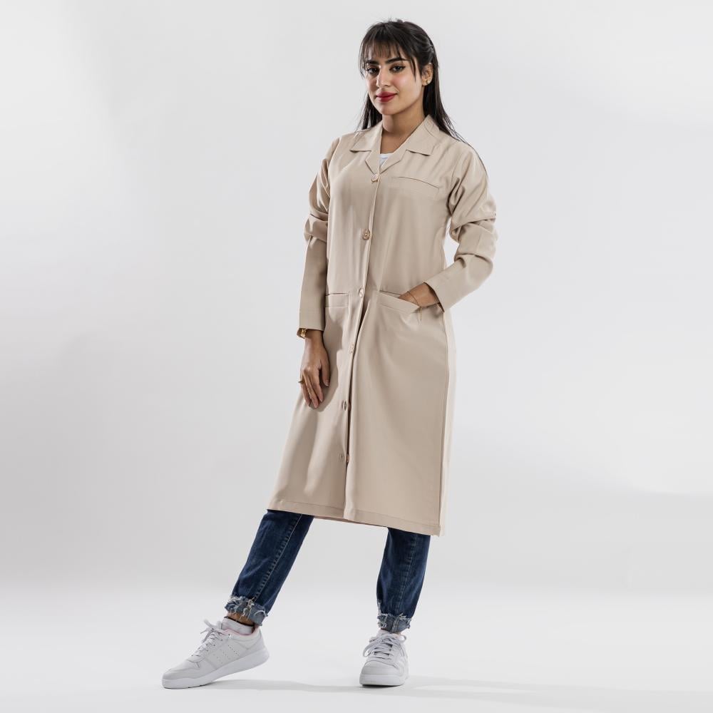 تفضلي بارتداء لا بكوت بيج اللون يمتاز بأزراره الأنيقة، تصميم يجمع ما بين الرصانة المهنية والوظيفة العملية. يُعد هذا اللاب كوت البيج الخيار الأمثل لمن يسعون إلى الدقة في الأداء ويقدرون قيمة الانطباع الأول في بيئة العمل. تم اختيار القماش بعناية لضمان الراحة طوال اليوم، كما تم تزويد اللاب كوت بجيوب واسعة تجعل الوصول إلى الأدوات الضرورية سهلاً وسريعاً. وفوق هذا، فإن المقاسات المتعددة المتوفرة تجعل من هذا اللاب كوت خياراً مثالياً لجميع المهنيين.