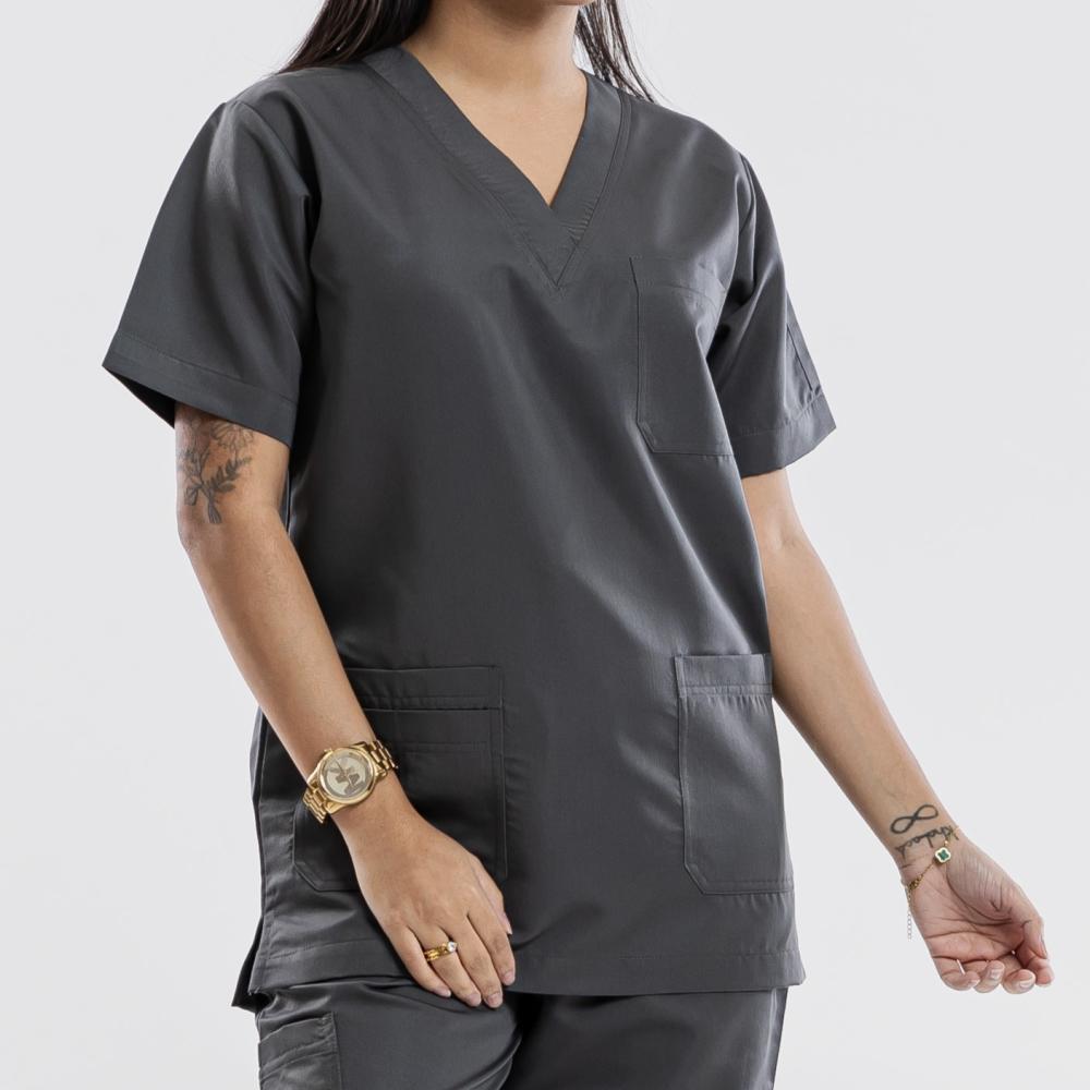 يُعد هذا السكراب الطبي ذو اللون الرمادي انعكاساً للأسلوب العصري في عالم الأزياء الطبية. يجمع بين اللون المميز والتصميم العملي، مع مراعاة المعايير العالية للمتانة والراحة. يُسهِل اختيار الأقمشة المناسبة عملية التنفس ويقاوم الرطوبة، مما يجعله ملائمًا للاستخدام اليومي المتواصل.