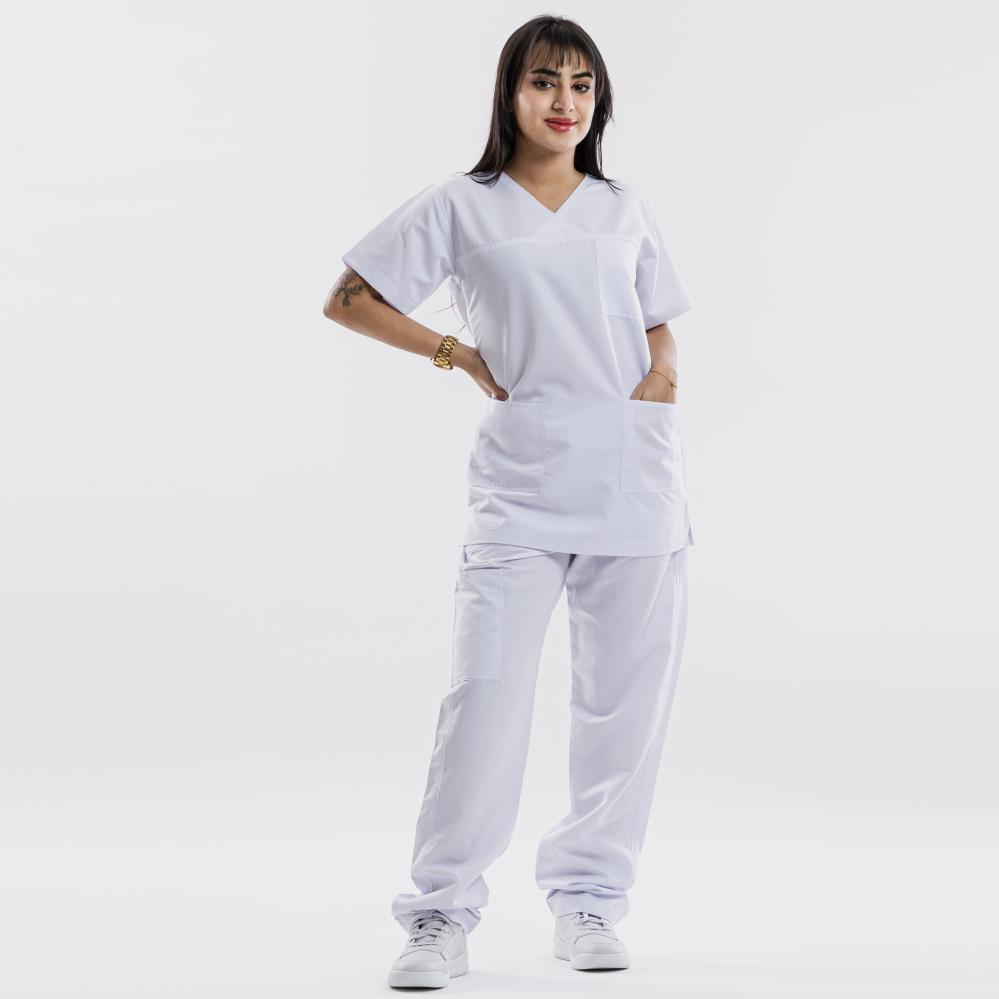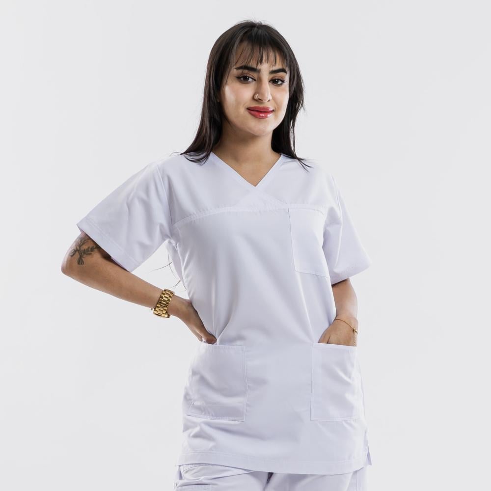 قوموا بتعزيز حضوركم الاحترافي في مكان العمل مع سكراب طبي متطور بلون أبيض مع ميزات مثل القصة المريحة والجيوب الاستراتيجية، يعتبر هذا السكراب الاختيار المثالي للمتخصصين الباحثين عن الفاعلية والشياكة. الأقمشة المستخدمة في صناعته تضمن الراحة طوال اليوم بجانب القوة والأناقة التي ترافقكم في كل خطوة تخطونها في بيئة العمل الطبية.